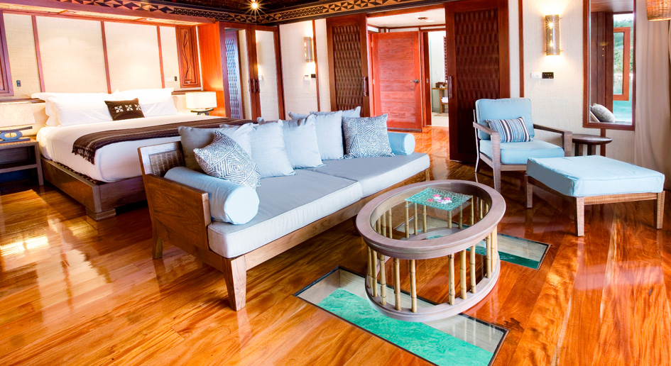Once upon a time, across the bluest of oceans, an island was born of lava and sand. To honor the magic of the place, the first visitors named it “Likuliku”, meaning “calm waters”. Here, in the middle of the Mamanuca archipelago, is where Fiji’s newest luxury escape, just for couples, was born. There are only 46 Bures at the resort, all fully air-conditioned. 10 Bures are suspended over the magnificent lagoon (the first of their kind in Fiji) and 36 line the pristine beachfront, some with private plunge pools, all with inescapable views of the ocean.