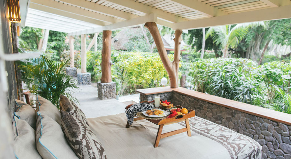 All meals and beverages are included on Turtle Island Resort. There are also various options in addition to the lovely dining area such as dinner on the beach or in your Bure, on a floating pontoon with only candlelight, or at the lovely mountain top location. Just let your Bure Mama know and she will make the arrangements for you.