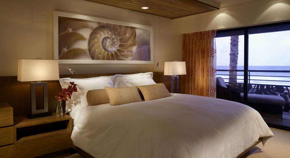 This lovely boutique property on Kauai has only 121 rooms. Each room is well equipped with air-conditioning, 42″ HD Cable TV, High Speed Internet Access, Refrigerator, ceiling fans, Nespresso Espresso Coffee Maker, Safes, Ipod Docking Station, Anichini Bathrobes & Slippers, and last but not least your own private lanai. Room categories include Ocean Front to garden view rooms, 1 or 2 bedroom King bedded suites.