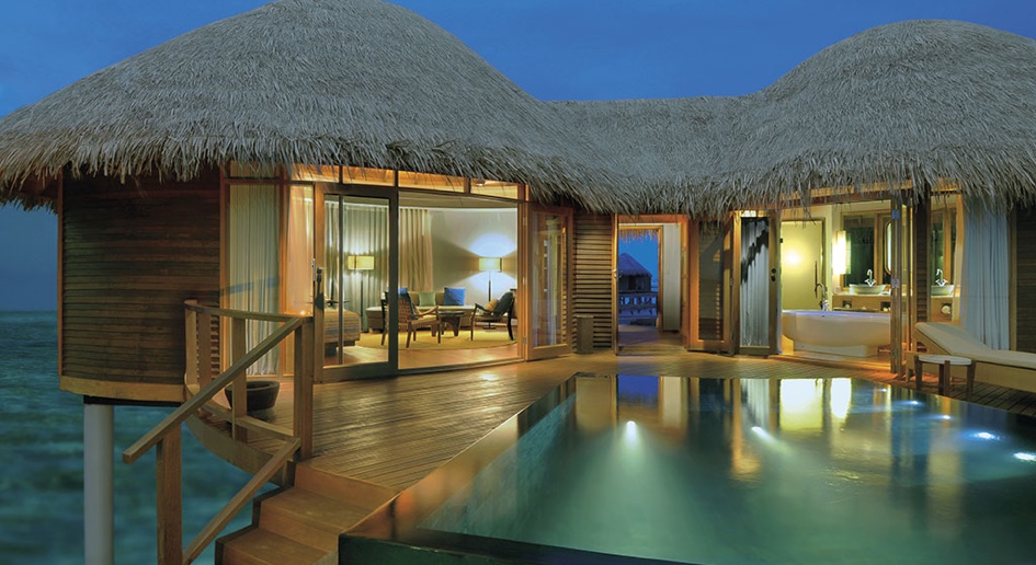 The Constance Halaveli Resort offers land and water based accommodations all with air conditioning, hairdryer, 42″ LCD TV/Satellite channels, DVD, free WiFi internet access, ipod connections, telephone, desk, minibar and mini wine cdooler, tea and coffee facilities, individual safes – and last but not least, outdoor showers.